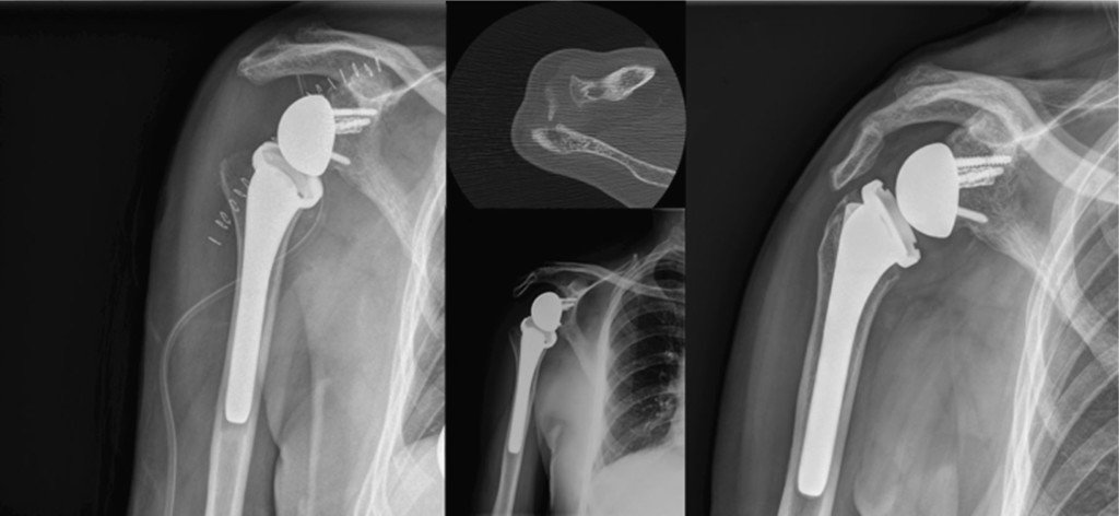In a standard shoulder replacement, the ball of the joint is replaced with a prosthetic ball and the socket with a prosthetic socket. In reverse shoulder arthroplasty, the positions are switched — a metal ball is attached to the shoulder blade and a socket is attached to the upper arm bone. This design allows the deltoid muscle, instead of the damaged rotator cuff, to power the arm.